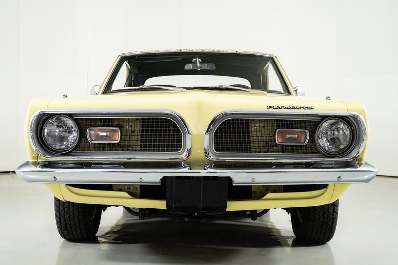 Rolling on 14-inch color-matched steel wheels with BF Goodrich Redline radials, this Barracuda for sale has presence from every angle. Complete with its original broadcast sheet, this example is 1 of just 937 Mod Top Barracudas built, and one of only 24 painted Sunfire Yellow with a Yellow Mod Top. A stunning and authentic piece of Mopar history!