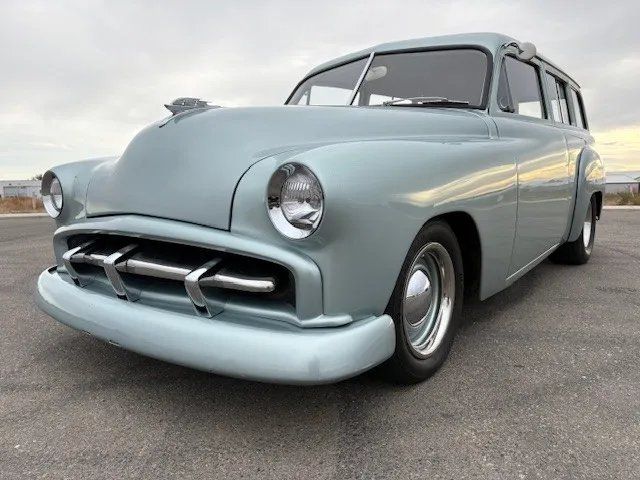 This 1952 Plymouth Suburban is a highly customized and well-equipped classic wagon with extensive mechanical and cosmetic upgrades. Finished in pastel blue with a matching smooth firewall and painted bumpers, the exterior presents nicely and includes extra paint with the correct code. Shaved handles with a remote fob add to the clean, modernized look. The Mustang II front suspension with QA1 adjustable coilovers, new rack and pinion steering, and recent alignment greatly improve drivability and ride quality. The 350 V8 runs strong, supported by an aluminum radiator and chrome dress-up kit. The Ford 9-inch rear end, dual exhaust, and upgraded brakes complement the build.