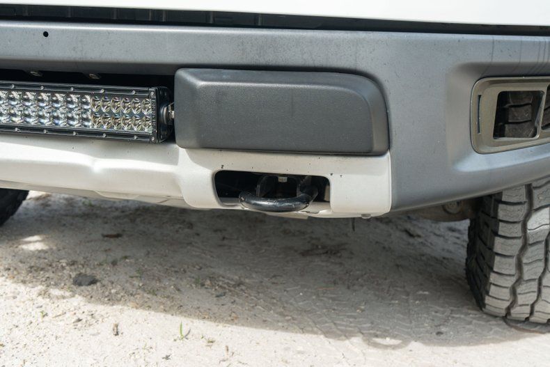 The four-door truck is finished in Oxford White with a black hood decal and Raptor graphics on the rear fenders. Additional exterior equipment includes a front skid plate, an LED light bar, a keyless entry keypad, a sunroof, a sliding rear window, xenon headlights, window rain guards, a bed mat and spray-on liner, and a receiver hitch. The 17 beadlock-capable alloy wheels were wrapped in 315/70 Cooper Discoverer AT3 tires in preparation for the sale.