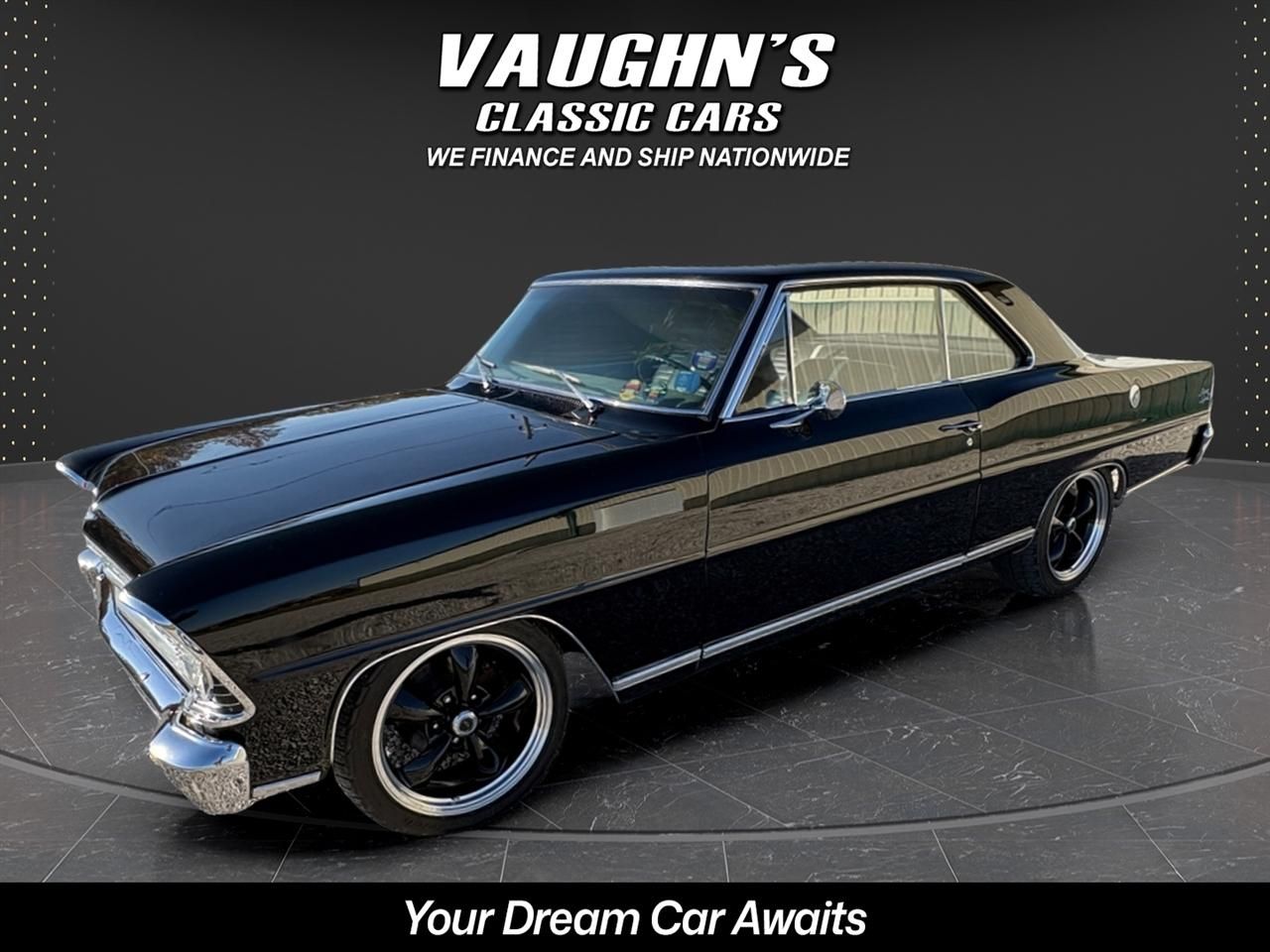 Super nice 1967 Chevy II Nova restomod with strong running 1996 Corvette LT1 350 V8 and 4L60 four speed automatic, 4-wheel power disk brakes and power steering, buckets with console, excellent interior, custom sound system, beautiful paint and chrome on a straight and solid body, American Racing mag wheels, Tilt wheel column, and 10 bolt rear end. This car runs strong, gets great mpg and drives amazing. Dont miss out on this cool Nova. We financing with 10% down and ship nationwide. Call us at 618 336 5210 to discuss a deal. Visit Vaughns Classic Cars online at vaughnsclassiccars.com to see more pictures of this vehicle or call us at 618-336-5210 today to schedule your test drive.