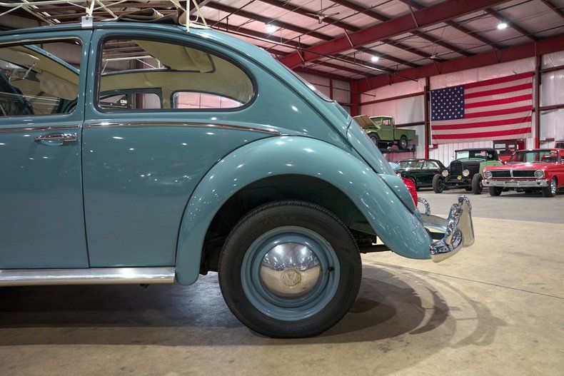 GR Auto Gallery is excited to present this delightful 1965 Volkswagen Beetle Roll Back finished in a standout Polar Blue. This Beetle captures everything people love about the classic VW, from its unmistakable curves to its cheerful personality. The fresh Polar Blue paint pairs wonderfully with the chrome bumpers, bright trim, and color-matched 15-inch steel wheels capped with chrome hubcaps. A vintage-style luggage roof rack adds an extra dose of charm and utility, and the manual rollback canvas sunroof is the star of the show, turning this Bug into an instant open-air cruiser.