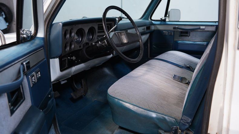 Under the hood sits a Goodwrench 350 cubic-inch V8 crate engine installed by Hardy Chevrolet in 1996. It has an Edelbrock carburetor and air filter. The engine is attached to a 700R4 4-speed transmission connected to a 10-bolt rear end. It has a stock-style front and rear suspension and 15-inch stock-style wheels wrapped in 255/70R15 tires, front and rear. The Chevy has power disc brakes in the front and power drum brakes in the rear. For exhaust, the Chevy has stock manifolds, dual exhaust running into a single pipe, then into a Flowmaster muffler, and finally exiting as dual exhaust.