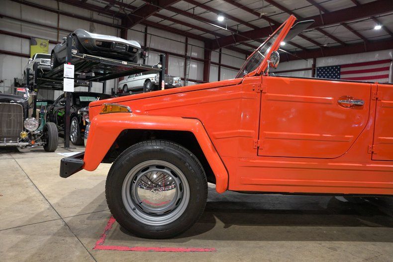 GR Auto Gallery is excited to present this 1974 Volkswagen Thing. Finished in a bright and cheerful orange, this VW brings all the quirky charm and open-air personality the Thing is famous for. The body lines are simple and iconic, the removable window inserts add to its utility, and the silver wheels with chrome hub caps keep the vintage look correct. It's the kind of classic that turns heads everywhere simply because there's nothing else quite like it.