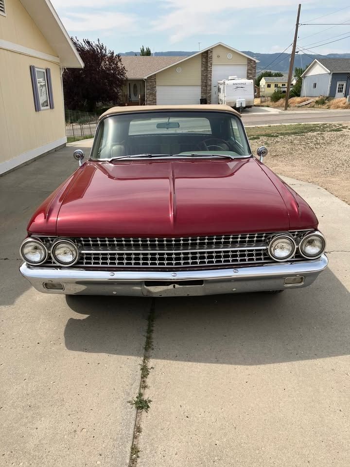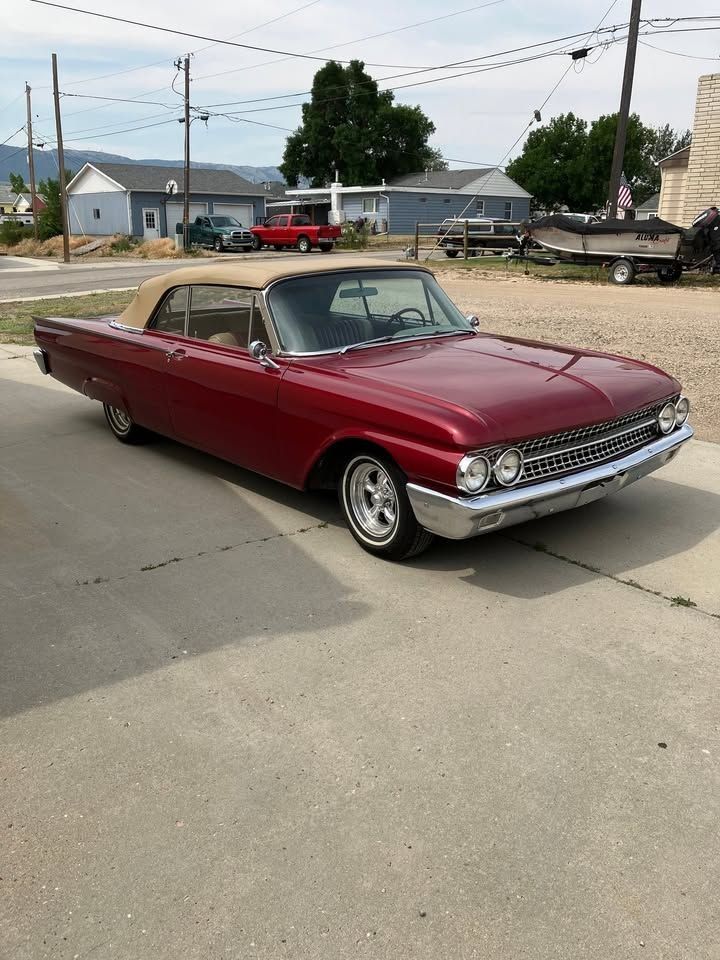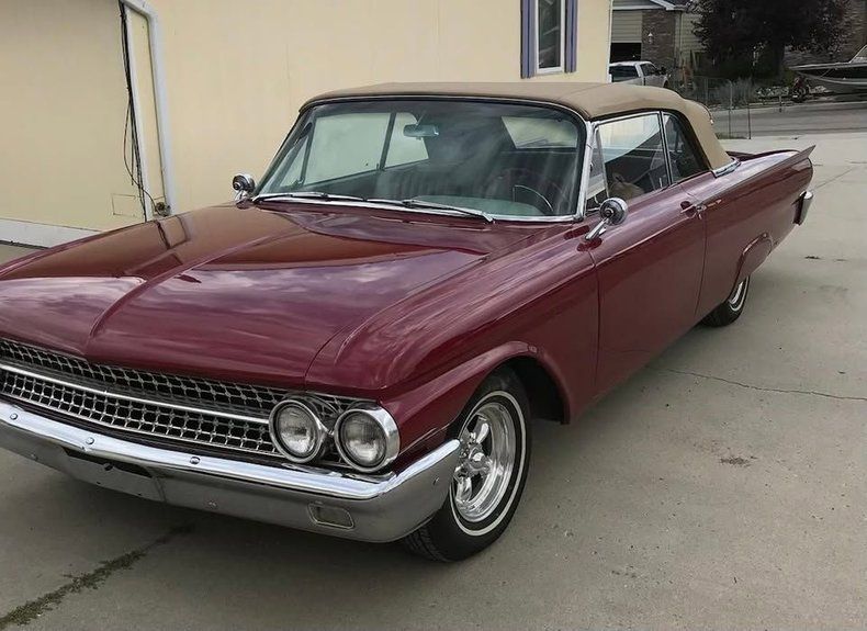This 1961 Ford Galaxie Sunliner Convertible is in excellent condition and presents beautifully with its Burgundy exterior and Tan interior. The paint has a high luster with a pearlescent shine and shows no cracking, peeling, or rust. The interior has been redone in tan and burgundy tuck-and-roll upholstery and is free of tears or damage. The vehicle has been consistently well-kept, stored indoors, and never driven in winter or off-pavement conditions. The V8 engine runs strong, and the Cruise-O-Matic transmission operates smoothly. The automatic convertible top works properly, and the rear window is in good condition. With only 57,333 miles, this Sunliner is a comfortable cruiser and show-ready classic.