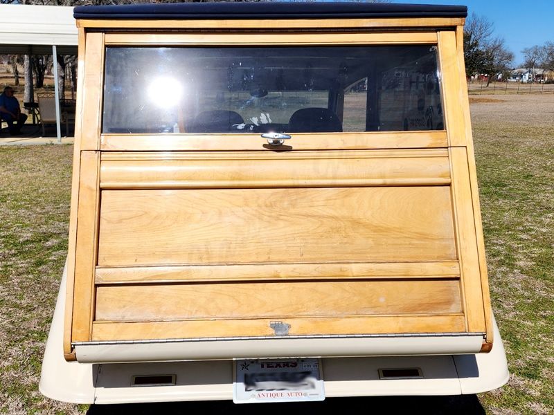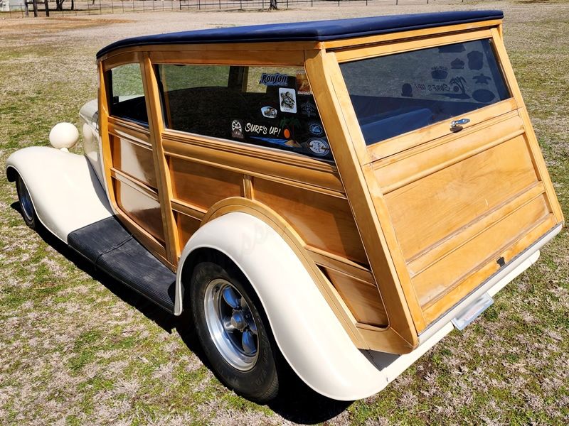 The Woodie or (Woody) station wagon took inspiration from fine wooden furniture to invoke that same feeling of class when it comes to automobiles. Completing the passenger compartment of cars in wood was a popular practice back in the day and was a modern interpretation of horse drawn carriages. These cars were typically created by large third party coachbuilders and occasionally by local carpenters. They were sold in limited production numbers and eventually strength, cost, and durability led to the wood constructed cars to be abandoned. That being said they are still extremely popular in the classic car world and are very much alive. The National Woodie Club is still very active and host events all across the country. This '33 is the two door version and was constructed by Hercules Motor Car Company out of Tampa, Florida. This was a popular Woodie builder and were still in business until recent years. If you look them up online you will see some articles discussion the very talented builders there. According to the owner of Hercules this car is one of the "New Generation" cars and was the 4th created out of a total of 133. This car has a combination of a custom steel body, custom wood paneling and fiberglass fenders. It is painted in White which pairs nicely with the wood paneling which we think is Hard Maple based on our research. It has a nice Blue canvas top in place that is in good condition. The glass on it is all good throughout and in typical Woodie style it has lift up windows instead of roll up windows. The chrome grill looks good and is framed by the larger style circle headlights. The car rides on American Racing Torq Thrust wheels and it has a taller tire in rear for a slight rake.