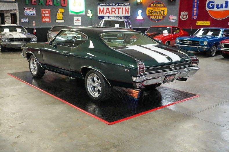 This 1969 Chevrolet Chevelle delivers classic muscle with modern driving confidence. Under the hood is a powerful 396 Big Block Chevy V8 paired with a Muncie 4-speed manual transmission and a stout GM 12-bolt rear end with 3.55 gearing. Equipped with power steering, power brakes, and front disc brakes, it's built for both performance and control. The car rides on 17" American Racing Torq Thrust wheels wrapped in BFGoodrich Advantage tires, while the Edelbrock intake, 600 CFM carb, and MSD HEI ignition boost performance. Finished in Green with White Stripes, this Chevelle combines iconic style with raw power. THIS VEHICLE QUALIFIES FOR FREE SHIPPING AND A WARRANTY!!