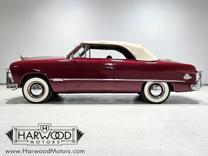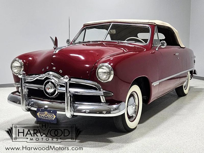 The 1949 Fords were all-new and many credit these cars for saving the Ford Motor Company following the war. These are quite modern-looking compared to a lot of their post-war competition, a much more integrated 3-box design that would set the stage for all the cars that would follow. For many enthusiasts, cars like this 1949 Ford Custom Deluxe convertible are the ones to own with their familiar "bullet nose" front end and smooth-running flathead V8s. Dressed in traditional Fez Red, this pretty convertible coupe has a perfect 40s look that would seem at home in a Normal Rockwell painting. Paint and bodywork were reportedly completed in the 1990s but its holding up great with only minor signs of use and a few touch-ups here and there. The slab-sided bodywork is commendably straight and the paint has a soft vintage shine that looks right. The doors close with a reassuringly solid sound, so you know the frame isnt sagging, and its fully dressed with accessories like the hood ornament plus front and rear bumper guards. The chrome and stainless trim is in good condition, with a few original parts working with restored pieces to give it a consistent look.