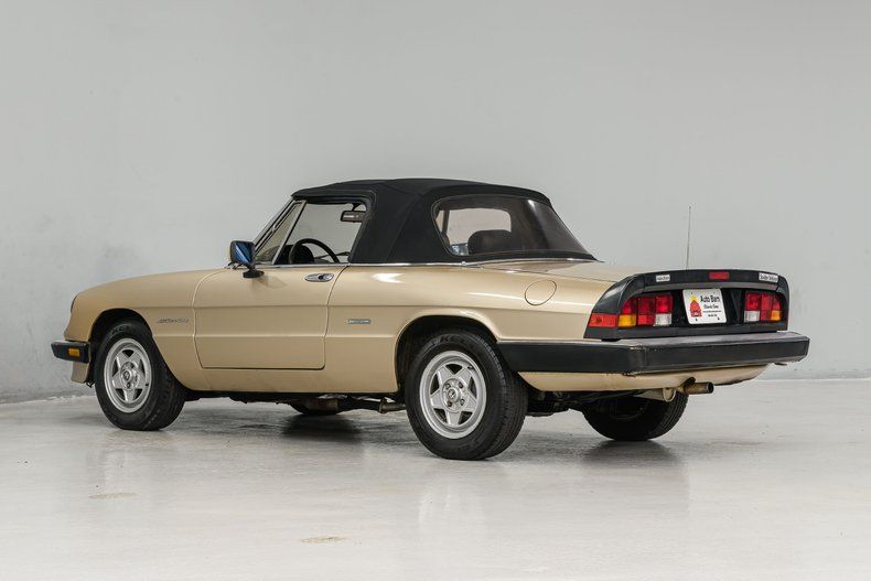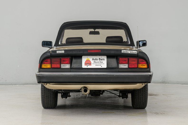 This vintage 1986 Alfa Romeo Spider Veloce roadster has been partially restored to original condition. The exterior has received professional re-spray of Beige Champagne, and the finish is in very good condition as is the black manual convertible top. Factory 5-spoke 14" alloys mount Kelly Edge radials.