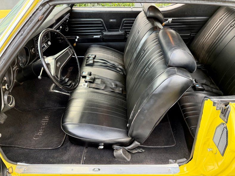 This is truly an interesting vehicle being one of very few SS Chevelles built in Canada with a Canadian Trim Tag and Build Sheet. We also have the Vintage Vehicle Services report to back it up! The exterior is painted in a gorgeous Daytona Yellow with a black SS spear down the sides. Correct Super Sport wheels are always a hit and really look great on this Chevy muscle car especially with the BFG radial TA tires wrapped around them! The body is straight and the gaps look great!