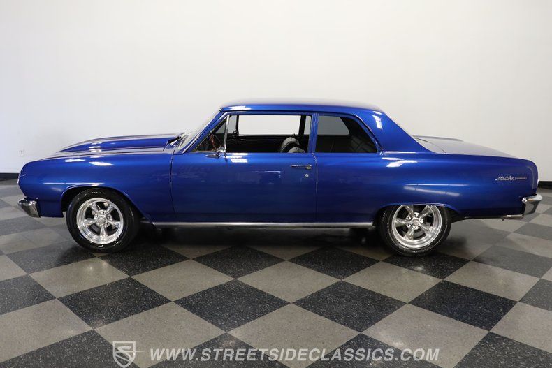What a great-looking take on one of the true quintessential classic muscle cars. This 1965 Chevrolet Chevelle Malibu is dressed in deep blue paint that holds a nice shine you can see from quite a distance, paired with a front grille and bumpers both fore and aft that are in top form. Its added cowl hood serves notice that there's some serious power lurking below, and the staggered 16"/17" American Racing Torq-Thrust wheels put the finishing touch on this vintage Chevy's performance-centric stance. Its minimalist badging is in top form and allows that appealing exterior color to take priority. Viewed from any angle, this is a really sharp representative of its model.
