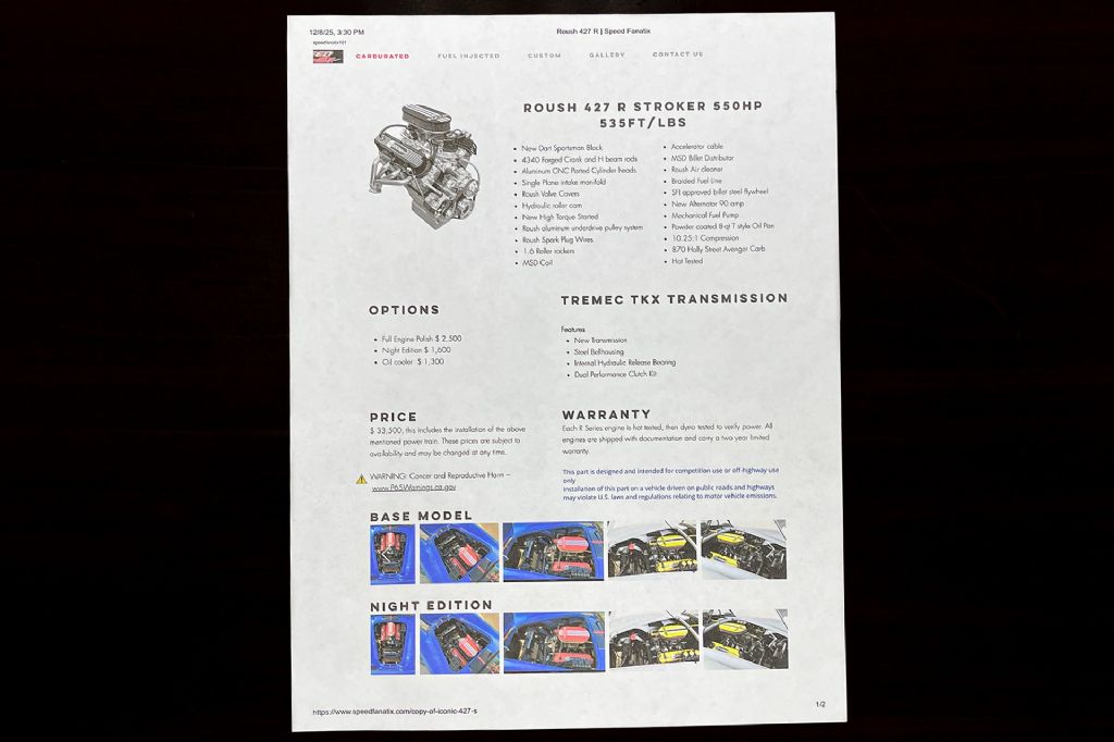 EXTERIOR: - Superformance fully assembled chassis. $90,000 value
