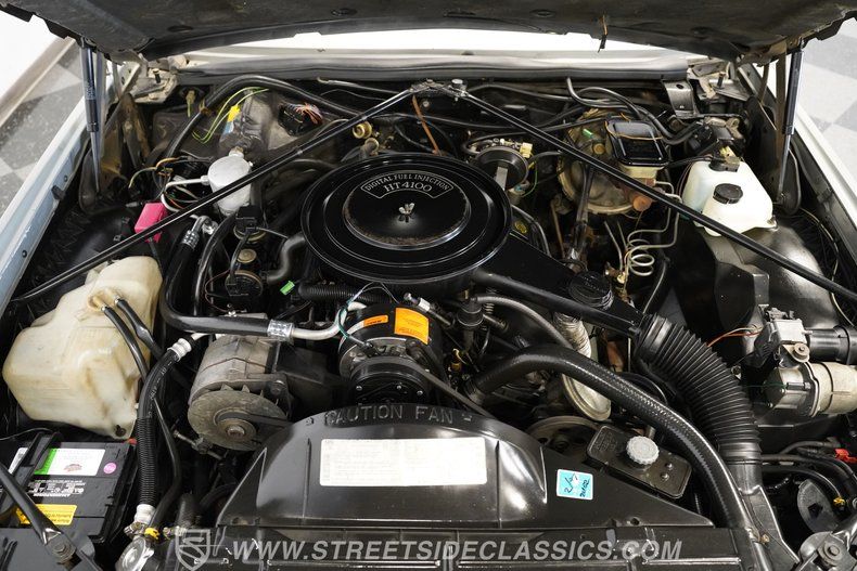 Power from the 4.1L V8 engine, complemented by a 4-speed automatic transmission with overdrive, stands ready to deliver smooth acceleration. This setup, along with features such as fuel injection, power 4-wheel disc brakes, power steering, and a fully independent suspension, ensures that this Eldorado doesn't just look good-it feels good to drive too. The engine bay's cleanliness and organization reflect meticulous maintenance, hinting at the attention this Cadillac has received.