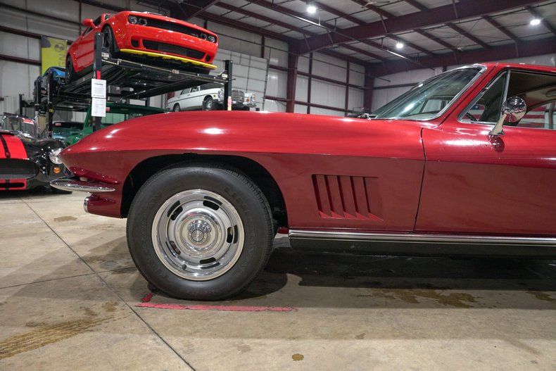 GR Auto Gallery is excited to present this truly special 1967 Chevrolet Corvette Stingray, a genuine diamond in the rough and one of the most honest examples you will come across. Finished in its original Marlboro Maroon paint with a black hood stripe, this Corvette wears its age and originality proudly. The body, paint, and interior were carefully removed during restoration and preserved exactly as they were, allowing the car to retain its authentic character and survivor level presence. Sitting on silver wheels with chrome Corvette hub caps and accented by brilliant chrome bumpers, this Stingray has an unmistakable look that simply cannot be replicated.