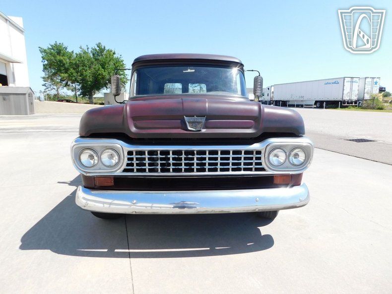 Gateway Classic Cars of Tampa presents this cool 1959 Ford Panel Truck. late 50s Ford Panel vans are becoming very popular these days! These big panel delivery vans are an uncommon sight now days. This one runs drives and operates better than new. But the body is well aged with a sympathetic patina motif. A unique feature of this burly workhorse is the chassis and powerplant. It no longer has the venerable Ford designed V8 and frame. You'll find after a quick drive that this 1959 Panel truck drives remarkably like a new car! In fact, under the skin is the entire drivetrain and chassis of a 2007 Toyota Tundra! All of the mechanicals from the Tundra was slipped under the body of the Panel Van including the dash. Modern conveniences such as the AC and AM/FM radio and heater all work as designed and enhance the experience of riding in a 65-year-old Truck with the ride, handling, and comfort of a 2000s era car. To add to the unique experience the truck sits on 17" steel wheels with whit walled tires and custom beauty rings. It gives the truck a cool retro-patina flavor. The 4.7l Toyota V8 exhaust through custom side pipes that allow for quite a bark. This truck sounds awesome. Inside there's plenty of room for work or friends. With custom buckets up front and an open, carpeted bay in the rear. The cargo area is accessed via dual barn doors I the rear. Overall, this is a great throwback, with the convenience of modern comfort and performance, plus Toyota reliability! Add this Awesome 1959 F-100 Panel truck to your collection. A great truck for fun or work!