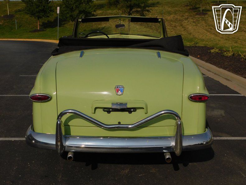 Introducing a classic piece of automotive history: the 1950 Ford Deluxe Convertible. This timeless beauty boasts a striking green exterior that captures the essence of vintage elegance. The convertible top, operated manually, allows you to enjoy open-air driving at your leisure, making every journey a nostalgic adventure.