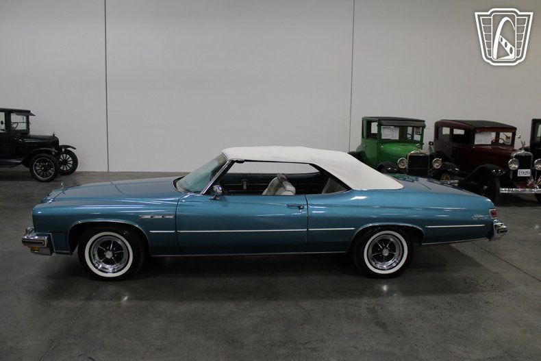 Gateway Classic Cars of Las Vegas is excited to digitally present this classic piece of American automotive history: the 1975 Buick LeSabre Convertible. This stunning vehicle boasts a striking blue exterior that complements its elegant white leather interior. Under the hood, you'll find a robust 350 CID V8 engine paired with a smooth 3-speed automatic transmission, offering a driving experience that is both powerful and effortless.
