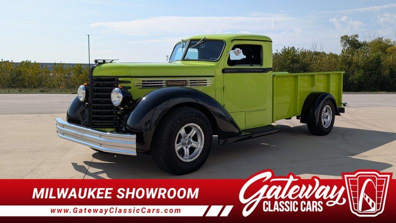 Gateway Classic Cars is proud to offer this remarkable piece of automotive history, the 1945 Diamond T 509, a classic vehicle that seamlessly blends vintage charm with modern enhancements. This stunning truck has a sleek vivid green and black exterior that exudes timeless elegance and sophistication, the "Cadillac of trucks". The bold color is complemented by a crafted interior featuring a unique combination of black and green leather, offering a striking contrast that enhances the overall aesthetic appeal.