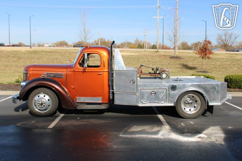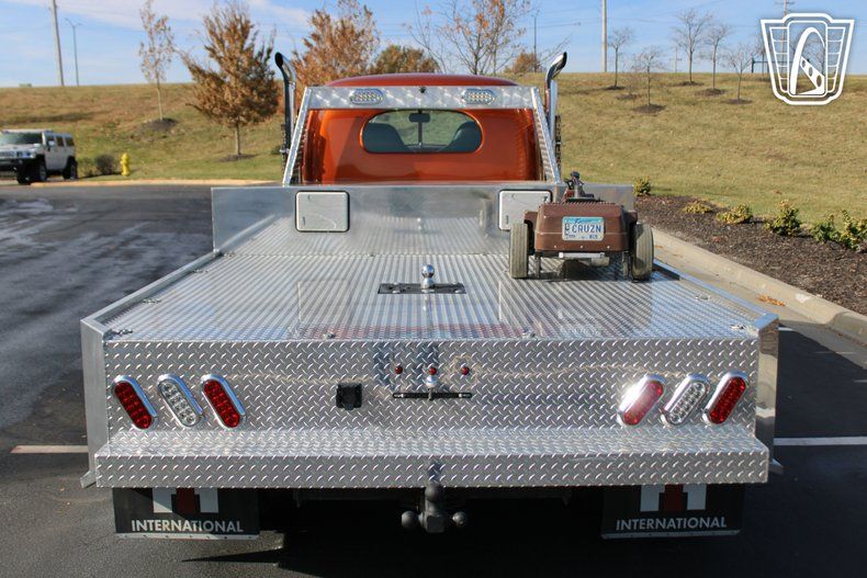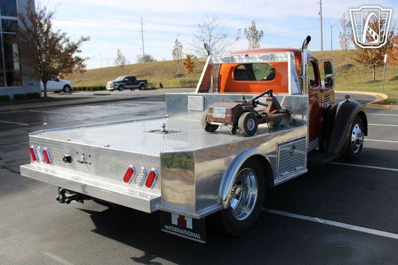 Gateway Classic Cars of Kansas City invites you to step back in time with a modern twist in this stunning 1948 International Harvester KB-7, a true masterpiece of vintage charm and contemporary performance. Drenched in a vibrant orange exterior, this classic truck is an undeniable head-turner, exuding a bold presence that captures the essence of a bygone era while embracing the conveniences of today. The striking color is complemented by a well crafted brown and orange interior, creating a seamless blend of style and comfort that invites you to take the wheel and embark on a journey like no other.
