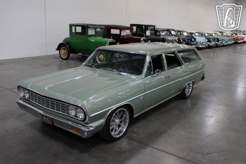 Introducing a classic gem that embodies the spirit of the 1960s: the 1964 Chevrolet Malibu. This iconic vehicle is a testament to timeless design and American automotive craftsmanship. With its striking Meadow Green exterior, this Malibu captures attention and admiration wherever it goes. The vibrant color is complemented by a sleek black leather interior, offering a sophisticated and comfortable driving experience. One improvement made was the addition of custom aluminum trim on the roof.