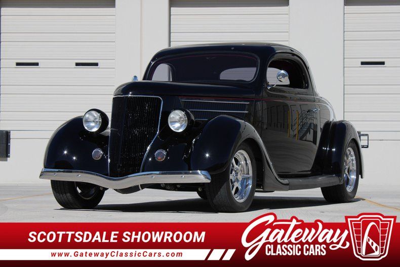 Introducing a classic masterpiece that seamlessly blends vintage charm with modern convenience: Gateway Classic Cars of Scottsdale is Immensely Excited to digitally present this 1936 Ford Coupe 3 Window. This iconic vehicle, with its striking black exterior, exudes timeless elegance and sophistication. The bold color choice is complemented by a vibrant red interior, creating a stunning visual contrast that is sure to turn heads wherever you go.