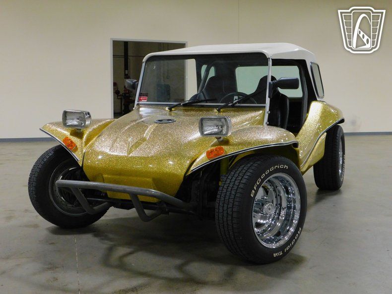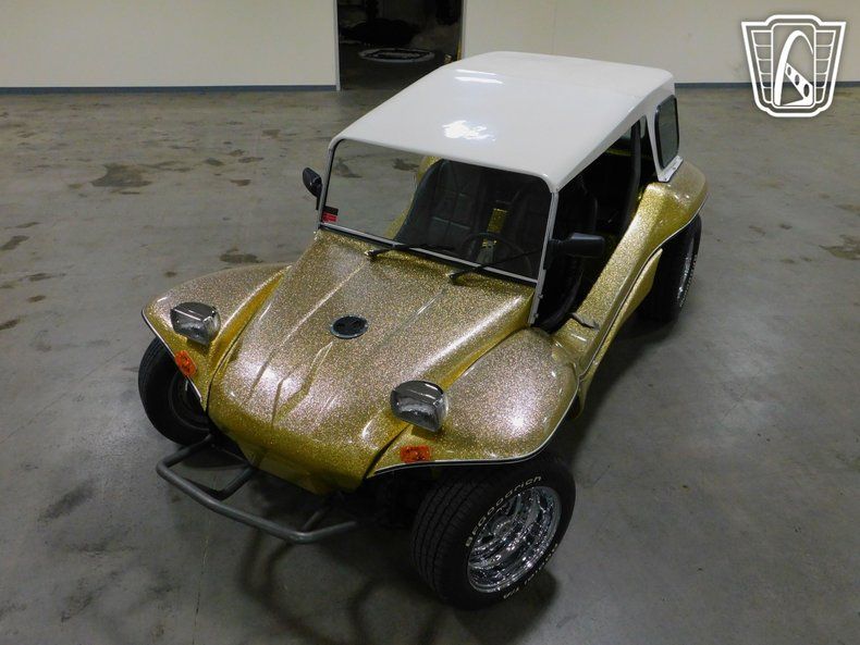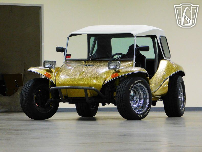 The vehicle rides on radial tires, which are known for their reliability and performance, ensuring a smooth and stable drive. Whether you're cruising along the beach or navigating city streets, this Volkswagen Dune Buggy is designed to deliver a memorable driving experience. Embrace the spirit of adventure with this distinctive and stylish vehicle that stands out in any setting.