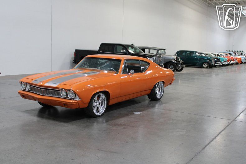 Gateway Classic Cars of Las Vegas is excited to digitally present this classic masterpiece that embodies the spirit of American muscle: the 1968 Chevrolet Chevelle. This iconic vehicle stands out with its striking orange exterior with gray racing stripes, a color that captures attention and admiration wherever it goes. The bold hue and deep metallic flake is complemented by the sleek lines and timeless design that the Chevelle is renowned for, making it a true head-turner on any road.