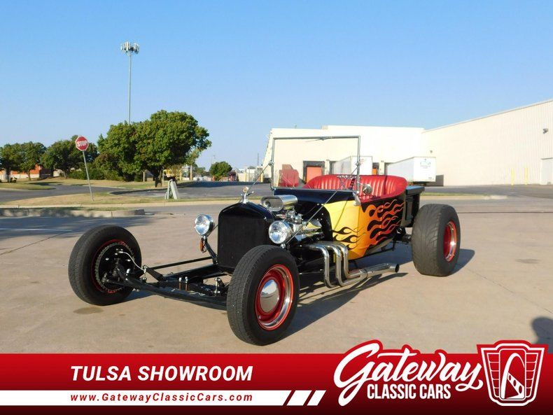 Gateway Classic Cars of Tulsa is proud to represent this 1923 Ford T Bucket, a vehicle that embodies the spirit of early American hot rodding. This iconic roadster is presented with a striking black exterior with custom wrapped flames that exudes timeless rebellion and a bold presence on the road. The sleek black finish is complemented by a vibrant red interior, creating a stunning contrast that highlights the car's vintage charm and unique character. The stand up custom column and chain steering wheel give this bucket a true rod look that's hard to miss.