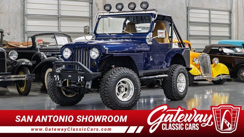 Gateway Classic Cars of San Antonio/Austin is excited to present this 1976 Jeep CJ-5, a distinctive example of classic Jeep styling and capability. This model features a blue exterior that captures the iconic spirit of the CJ lineup, paired with a brown interior that complements its rugged character. Power comes from a 232 cubic inch inline six-cylinder engine, connected to a T18 four-speed manual transmission that offers an engaging and traditional driving experience. The engine bay also includes an aluminum radiator. Inside, the Jeep CJ-5 provides a selection of features aimed at comfort and enjoyment on the road. An am/fm radio and CD player offer entertainment options for your travels, while the tilt steering wheel and seatbelts contribute to a comfortable and accommodating cabin environment. This CJ-5 includes conveniences such as power steering and power brakes, supporting ease of operation in various driving situations. The vehicle is also equipped with custom wheels paired with Yokohama Geolandar M/T G003 tires. Skyjacker Black MAX steering stabilizers are also equipped, contributing to its overall presentation. Altogether, this 1976 Jeep CJ-5 highlights the enduring appeal of Jeep's classic design, offering a blend of style, involvement, and features that continue to resonate with enthusiasts.