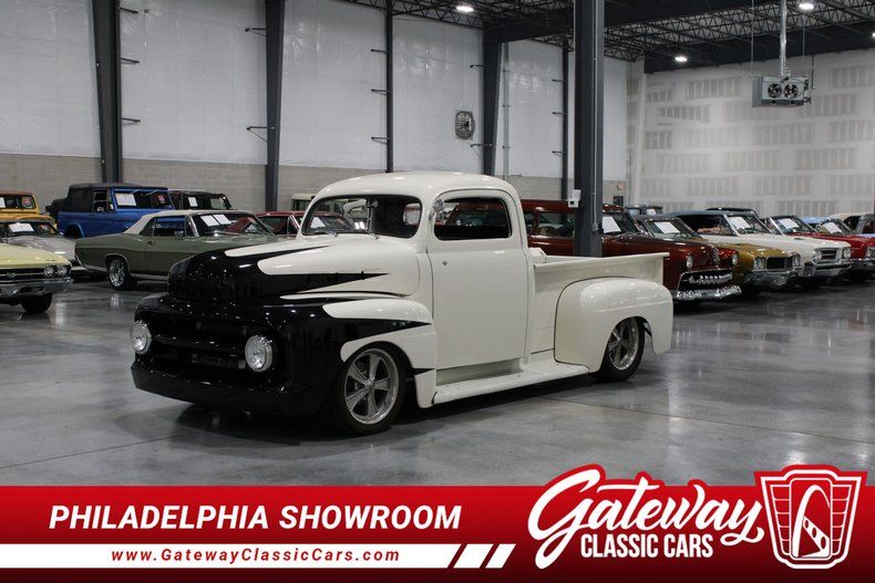 Gateway Classic Cars of Philadelphia is pleased to showcase a remarkable 1951 Ford F1 Pickup, featuring a striking white exterior paired with a sleek black interior. Under the hood, this classic truck is powered by a robust V8 engine, complemented by an automatic transmission. The vehicle is equipped with a range of features, including an AM/FM radio and a cassette tape player, offering a touch of nostalgia for music enthusiasts. For enhanced driving comfort, the truck includes power brakes and power steering, along with a tilt steering wheel for added convenience.