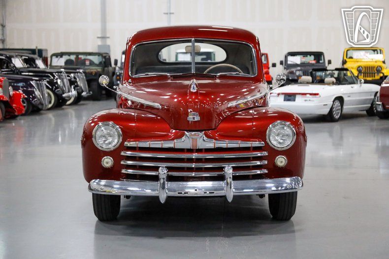 Gateway Classic Cars of San Antonio/Austin is proud to present this 1947 Ford Deluxe, a true testament to the golden age of American automotive design. This vintage beauty boasts a striking red exterior that captures the essence of post-war optimism and style. The vibrant hue is complemented by a sophisticated grey cloth interior, offering a comfortable and nostalgic driving experience that transports you to a bygone era. Under the hood, this Ford Deluxe is powered by a robust V8 engine, delivering the kind of performance that made the Ford name synonymous with reliability and power. Paired with a manual transmission, this vehicle offers an engaging driving experience that connects you directly with the road, making every journey a memorable adventure. Inside, you'll find an AM radio, a charming feature that adds to the authenticity of this classic car. The grey cloth interior not only provides comfort but also enhances the vintage appeal, making it a great choice for enthusiasts who appreciate the finer details of automotive history. The radial tires ensure a smooth ride, offering modern reliability while maintaining the car's classic aesthetic. This 1947 Ford Deluxe is more than just a car; it's a piece of history that embodies the spirit of an era. Whether you're a collector or simply someone who appreciates the timeless elegance of classic cars, this Ford Deluxe is sure to captivate and inspire.