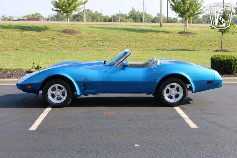 Gateway Classic Cars of Kansas City is thrilled to digitally present this 1975 Chevrolet Corvette! Experience the charm and power of a classic American sports car with this 1975 Chevrolet Corvette. Sporting a striking blue exterior, this Corvette captures attention wherever it goes, offering an iconic look that timelessly blends style and performance. Complemented by a sleek silver interior, the color combination is both elegant and dynamic, highlighting the car's unique design ethos from a memorable automotive era.