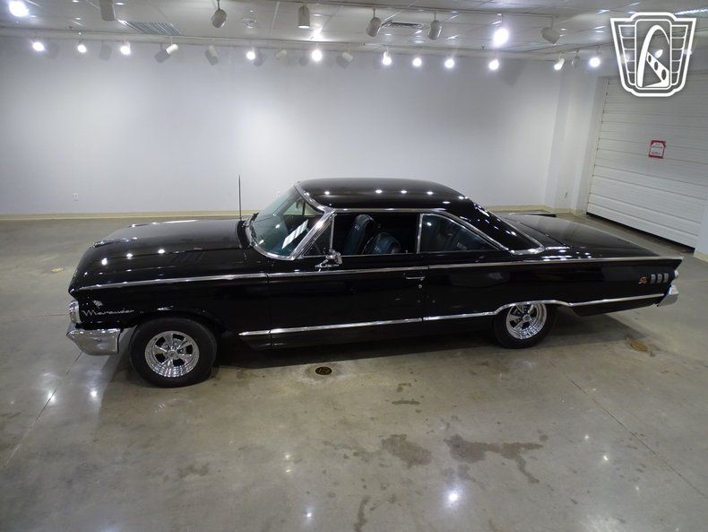 Gateway Classic Cars of St. Louis digitally presents this 1963 Mercury Monterey Marauder S55, a classic embodiment of American automotive excellence. Dressed in a sleek black exterior, this vintage beauty exudes an aura of sophistication and power that is sure to turn heads wherever you go. The bold lines and distinctive styling of the Monterey Marauder are complemented by a luxurious blue leather interior, offering a striking contrast that enhances its timeless appeal.