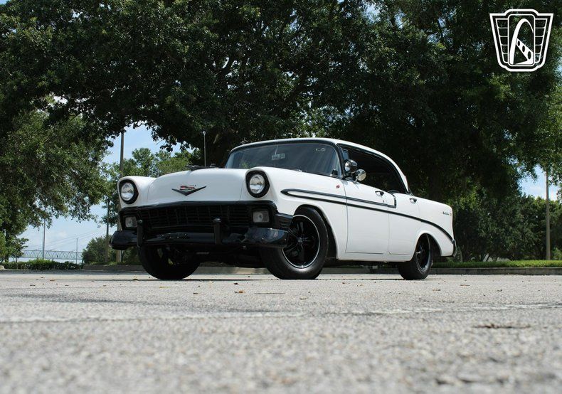 Gateway Classic Cars of Orlando is proud to digitally present this stunning 1956 Chevrolet Bel Air 4 Door Hardtop, a classic embodiment of mid-century American automotive design and engineering. This iconic vehicle is presented in a timeless Dupont White Knuckle exterior color that beautifully complements its powder coated trim and grey and white custom Ciadella upholstered interior, offering a sophisticated and classic look that is sure to turn heads wherever it goes.