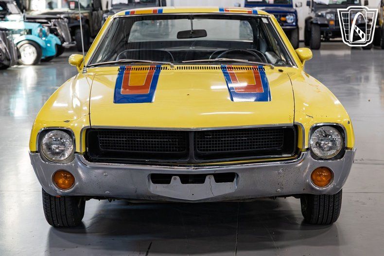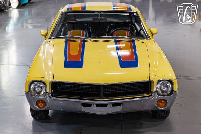 Gateway Classic Cars of San Antonio/Austin is excited to present this 1968 AMC Javelin. This iconic vehicle stands out with its vibrant exterior, showcasing a unique blend of yellow, blue, red, and orange colors that capture the spirit of the late 1960s. Under the hood, you'll find a 232 CID engine paired with a 3-speed manual transmission, offering a driving experience that is both engaging and nostalgic. Step inside to discover a well-appointed interior featuring black leather seats that provide a touch of luxury and comfort. The cabin is equipped with air conditioning, ensuring a pleasant ride regardless of the weather. For your entertainment, the car includes an AM/FM radio, allowing you to enjoy your favorite tunes as you cruise down the road. Safety and style are seamlessly integrated with the inclusion of seatbelts and classic hub caps that complement the car's overall aesthetic. This 1968 AMC Javelin is claimed by the seller as a one-owner vehicle, offering a rare opportunity to own a piece of automotive history that has been cherished over the years. Whether you're a collector or an enthusiast, this Javelin promises to deliver a driving experience that is both memorable and enjoyable.