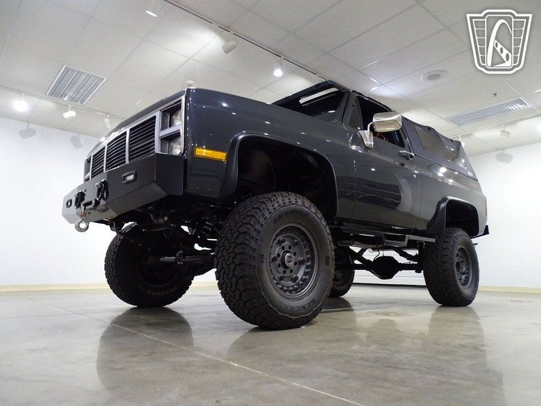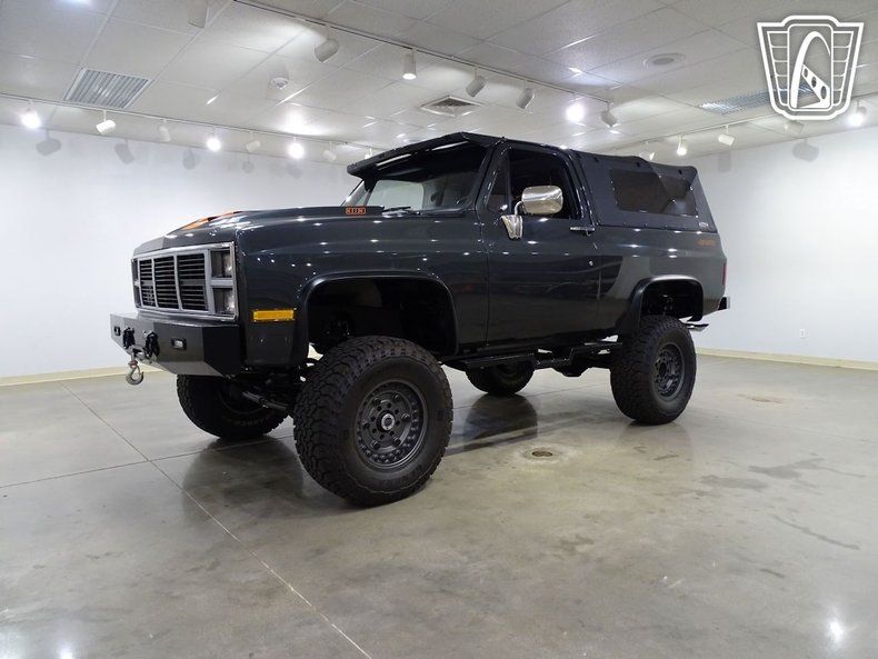 This '87 Jimmy stands tall and mean-an all-terrain bruiser rebuilt from the frame up with a full restomod treatment. Finished in a deep metallic charcoal and paired with a rugged soft-top bed cover, this custom build blends vintage square-body attitude with modern craftsmanship and off-road capability.