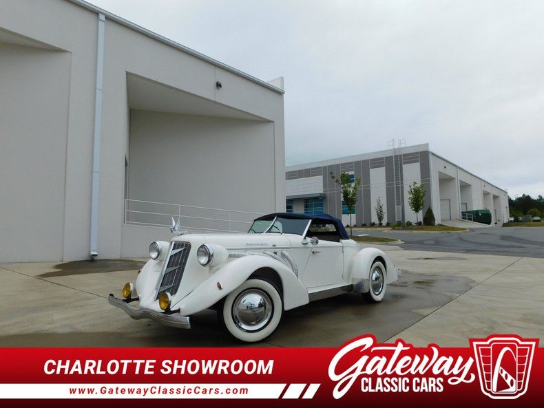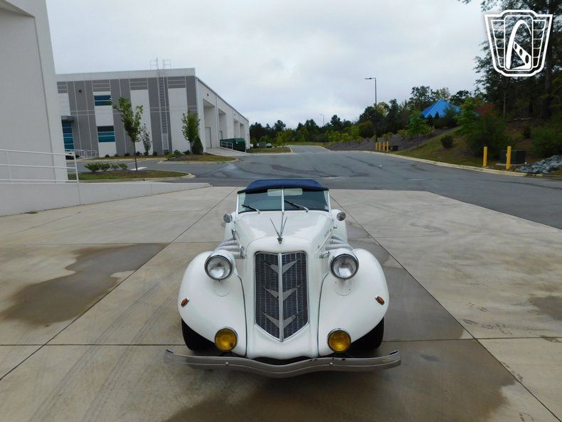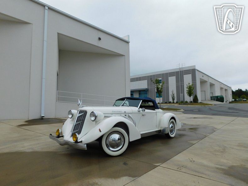 Step into a world of classic elegance and timeless design with this stunning 1976 Auburn Replica. This lovely vehicle boasts a pristine white exterior that exudes sophistication and charm. The striking contrast of the blue leather interior adds a touch of luxury and refinement, making every journey an experience to remember.