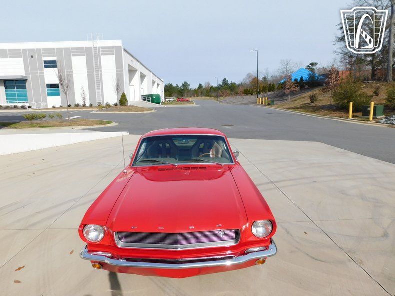 Introducing a classic icon with a modern twist: the 1965 Ford Mustang Fastback. This stunning vehicle is a true embodiment of American muscle, featuring a striking red exterior that is sure to turn heads wherever you go. Inside, the tan vinyl interior offers a timeless contrast, providing a warm and inviting atmosphere for both driver and passengers.