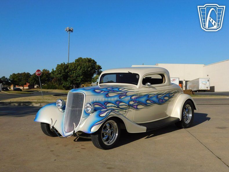 Gateway Classic Cars of Tulsa is happy to digitally present this timeless allure of classic automotive design with this stunning 1933 Ford 3 Window Coupe, a true embodiment of vintage elegance and modern performance. Built on a Pete and Jake frame with chrome front end, chrome tuned port Injection and so much more. The exterior is gracefully adorned in a pristine high dollar House of Color pearl white finish with bright blue graphics that look amazing, exuding a sense of sophistication and charm that is sure to turn heads wherever you go. Complementing the striking exterior is a luxurious custom tan leather interior that has an incredible fit and finish, providing a comfortable and stylish driving environment that enhances every journey.
