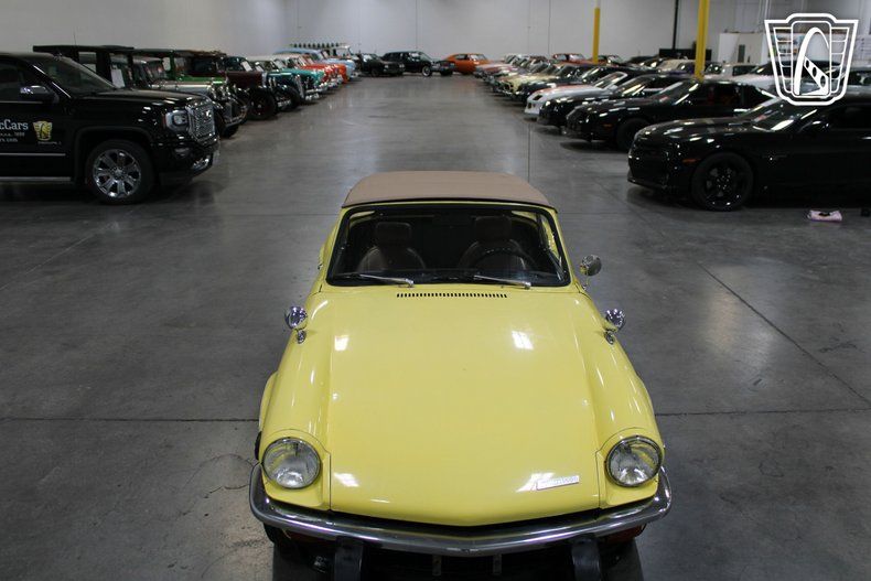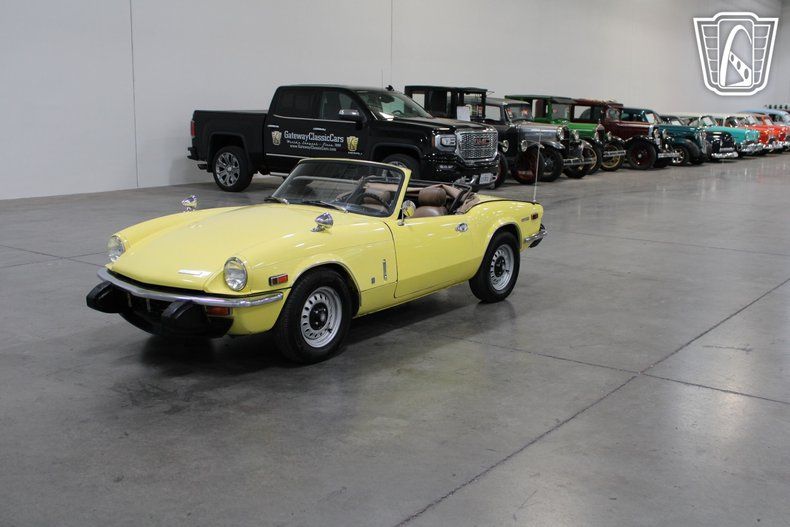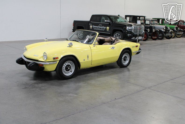 Gateway Classic Cars of Las Vegas is excited to digitally present this 1974 Triumph Spitfire 1500, a classic embodiment of British automotive design and engineering. This striking vehicle features a vibrant yellow exterior that captures the essence of its era, paired with a sophisticated tan interior that complements its sporty demeanor. Under the hood, you'll find a 79 CID 4-cylinder engine, delivering a driving experience that is both engaging and authentic. The manual 4-speed transmission offers a hands-on connection to the road, making every drive a memorable journey.