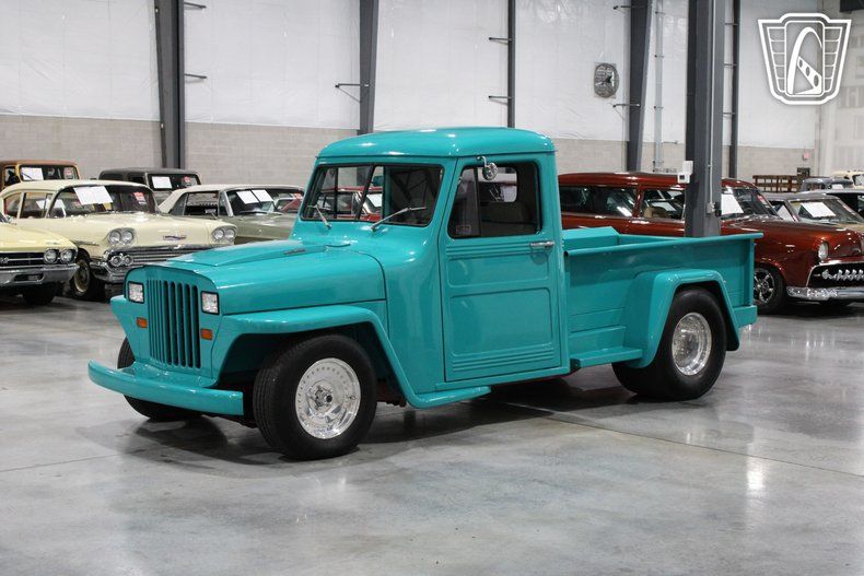 Gateway Classic Cars of Philadelphia proudly presents the 1947 Jeep Willys Pickup Pro Street. This iconic vehicle stands out with its striking turquoise exterior, a color that not only captures attention but also pays homage to the vibrant spirit of the late 1940s. Under the hood, this classic pickup is powered by a formidable 440 V8 engine, offering a robust performance that is complemented by the smooth operation of an automatic transmission. This combination provides an exhilarating driving experience that is both powerful and seamless.
