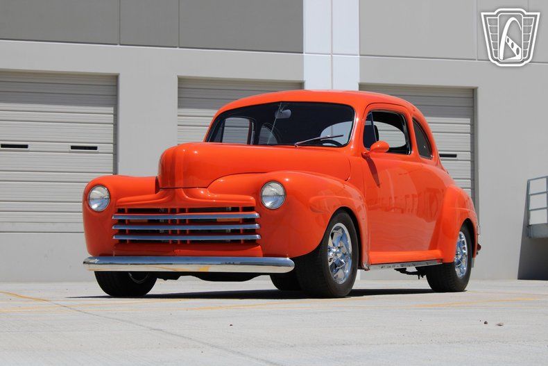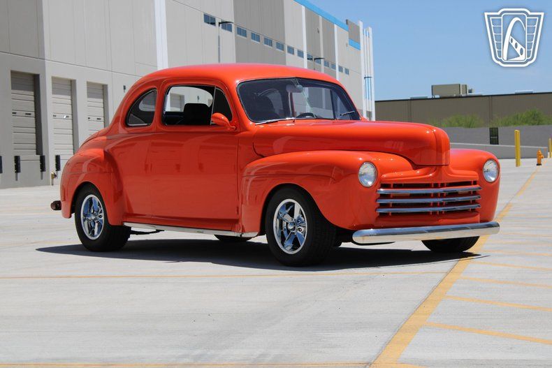 Gateway Classic Cars of Scottsdale is proud to digitally present this 1947 Ford Coupe, a classic embodiment of timeless design and modern performance. This stunning vehicle boasts an eye-catching orange exterior. Complementing its vibrant exterior is a luxurious black leather interior, offering a sophisticated and comfortable driving experience.