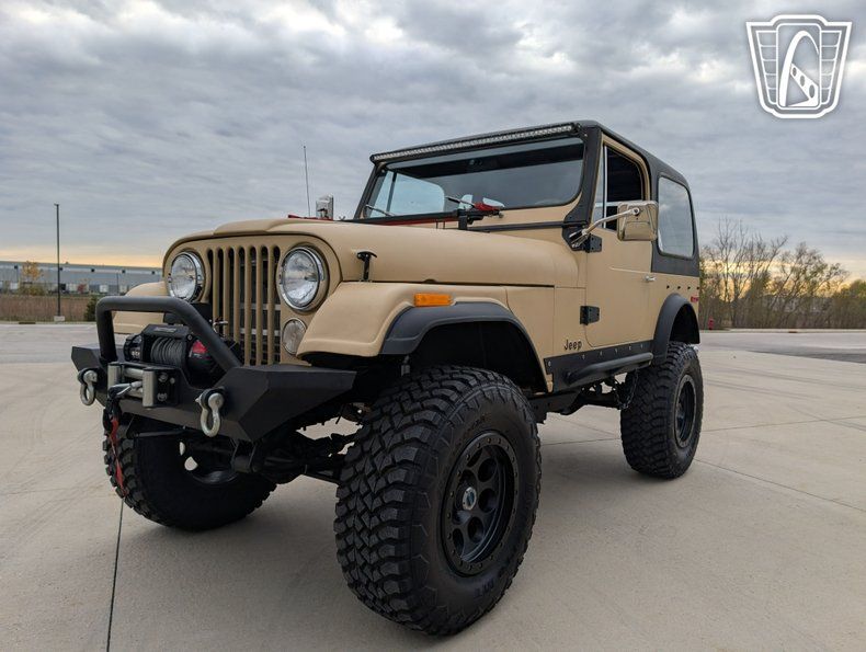 Introducing a classic blend of rugged style and powerful performance, this 1976 Jeep CJ-7 is a standout vehicle for enthusiasts and collectors alike. The exterior boasts a distinctive cream stipple finish that captures the essence of vintage charm while offering a unique aesthetic appeal. Complementing this striking exterior is a sleek black interior that provides a timeless contrast, enhancing the overall allure of this iconic Jeep.