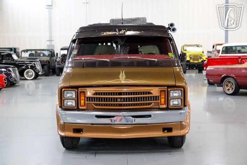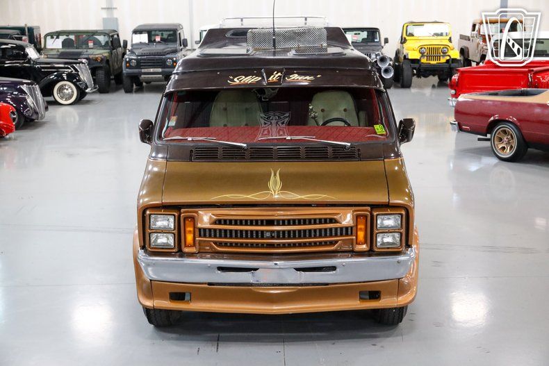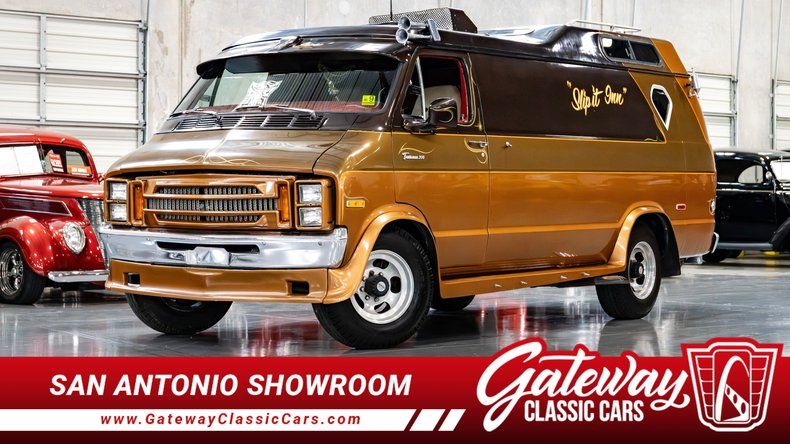 Gateway Classic Cars of San Antonio/Austin is excited to present this 1977 Dodge B300. This large bodied van truly manages to take the cake in terms of customization and displays how awesome a vehicle can look with true attention to detail. The outside of this van brings people in with a two toned brown and gold paint job that is set off with custom graphics going up the side, zoomie style exhaust tips, spike tips on the runner panels, and custom light fixtures serving as brake lights. The inside has been furnished with custom seating, shag rug, custom velour on the side panels, custom cabinetry, and a bed in the back. Up front we have custom swivel seats that bring you up to the cockpit of this beautiful van and features an aftermarket stereo deck mounted in the overhead console as well as a CB radio that also channels through an intercom system to talk to people outside the van. Under the hood of this massive van lies a 360 cubic inch V8 which supplies plenty of power through 727 Torqueflight 3-Speed automatic transmission to help move this party on wheels along. This van is truly one of a kind and there is only once in life you will have the chance to own this piece so don't miss your chance to get at it.