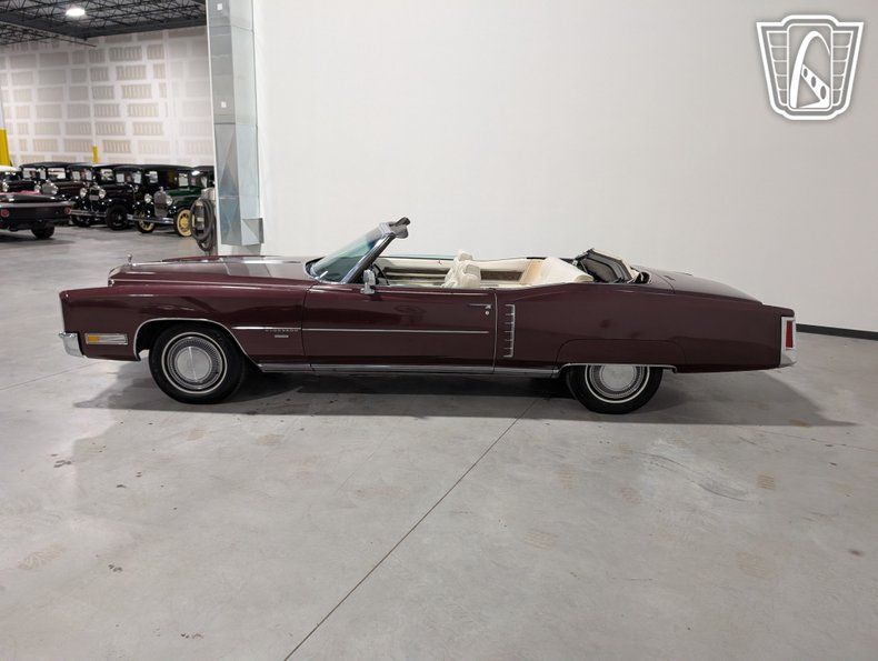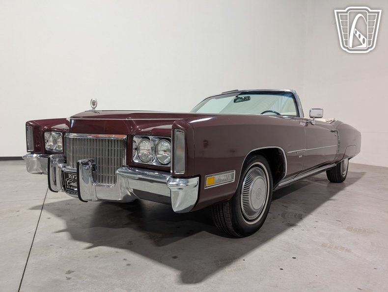 Introducing a classic icon of American automotive luxury: the 1971 Cadillac Eldorado. This distinguished vehicle is presented in a striking plum exterior color, complemented by a sumptuous white leather interior. Under the hood, you'll find a robust 8.2-liter V8 engine paired with a smooth automatic transmission, offering a driving experience that is both powerful and refined.