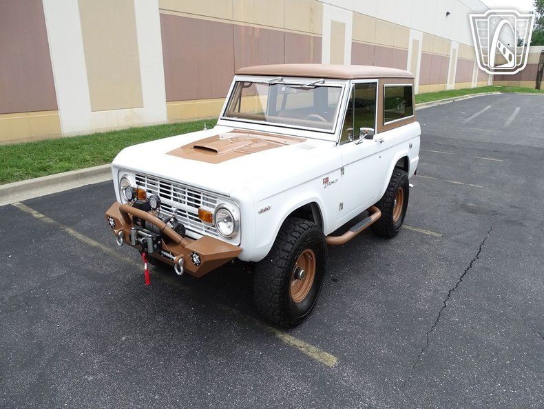 Fresh from restoration, this Bronco starts with a powder-coated frame, bumpers and wheels. The hood and roof are original metal, but the rest of the project is covered in new sheet metal and glass.
