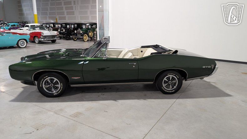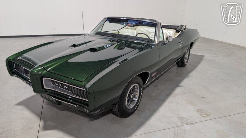 Gateway Classic Cars is proud to offer this classic icon of American muscle, the 1968 Pontiac GTO, a vehicle that embodies the spirit of performance and style. This stunning example is finished in the striking Verdoro Green exterior, a color that captures the essence of the era with its rich, deep hue. Complementing the exterior is a luxurious pearl white interior, offering a sophisticated contrast that enhances the overall aesthetic appeal of this legendary automobile.
