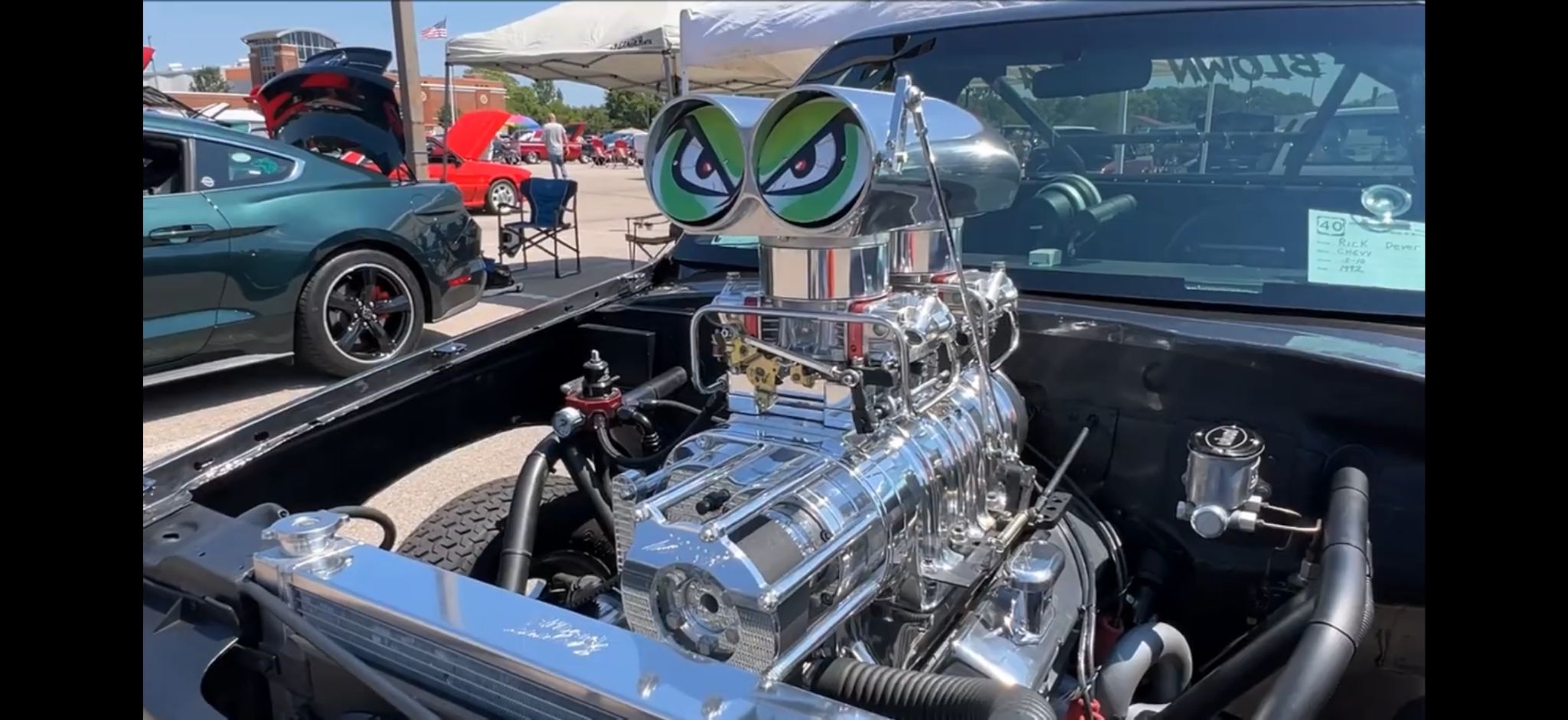 Drivetrain: Dart 408 blower motor, Blueprinted engine, Dart block, Forged 4340 double keyed crank, H-beam steel rods, JE forged pistons, File fit molly rings, Canton oil pan, Comp cams 652/652 roller cam & lifters, Comp double roller timing chain & gears, Polished aluminum timing chain cover, Polished 210CC runner 64cc chambered aluminum heads, Manley severe duty stainless steel valves, Comp cams valve springs, Comp cam chromoly retainers, Manley 7/16” rocker studs, Chromoly roller rockers, Jomar Performance stud girdles, Polished cast aluminum valve covers, BDS blower hub, 9" blower converter, BDS 1071 supercharger, AED 750 blower carbs, Stainless fuel lines & linkage, Funny car style belt guard, Abruzzi racing powerglide trans, Stroud parachute