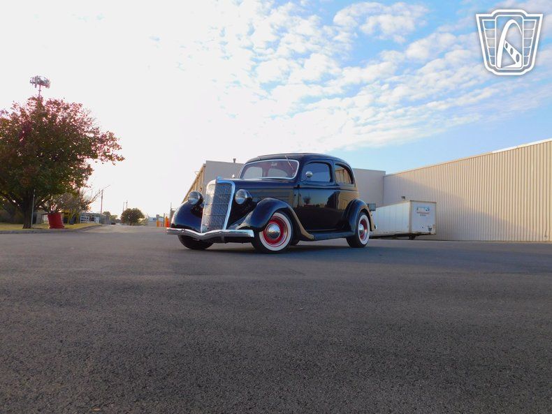 Gateway Classic Cars of Tulsa is proud to digitally present this 1935 Ford Tudor. A classic beauty that blends vintage style with modern comforts. Dressed in a sleek black exterior and complemented by a striking red vinyl interior, this car is a head-turner from every angle. Slide into the plush seats, and you're instantly transported to an era of elegance and sophistication, with just the right touch of contemporary convenience to make every drive enjoyable.