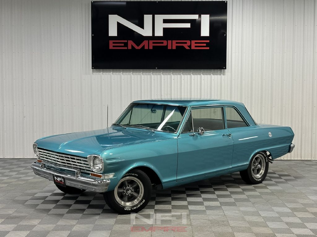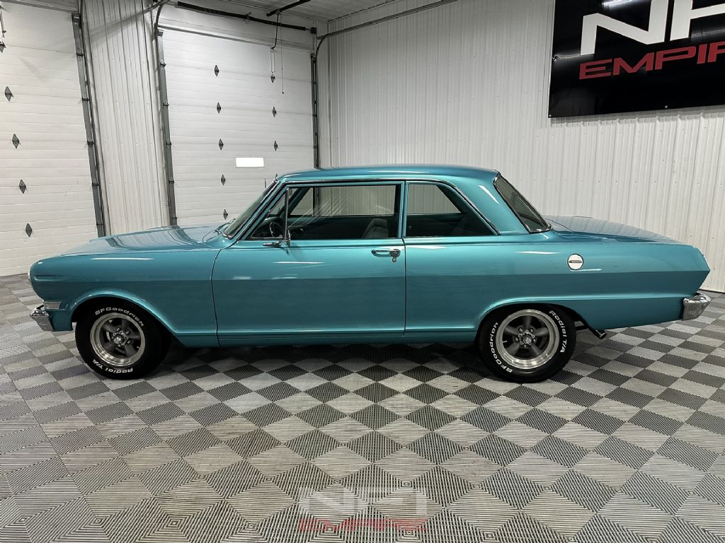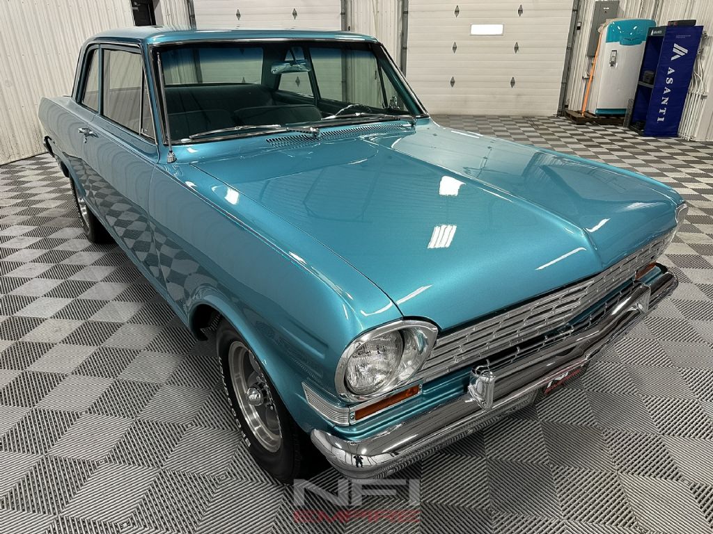 This 1963 Chevrolet II 300 Series is a clean, thoughtfully built example of an early Chevy II that balances classic appearance with well-chosen mechanical upgrades as a tribute to the early Nova trim. The car was fully restored in 2006, and the light blue exterior remains in great shape today, presenting as a well-kept show-quality driver rather than an overdone build.