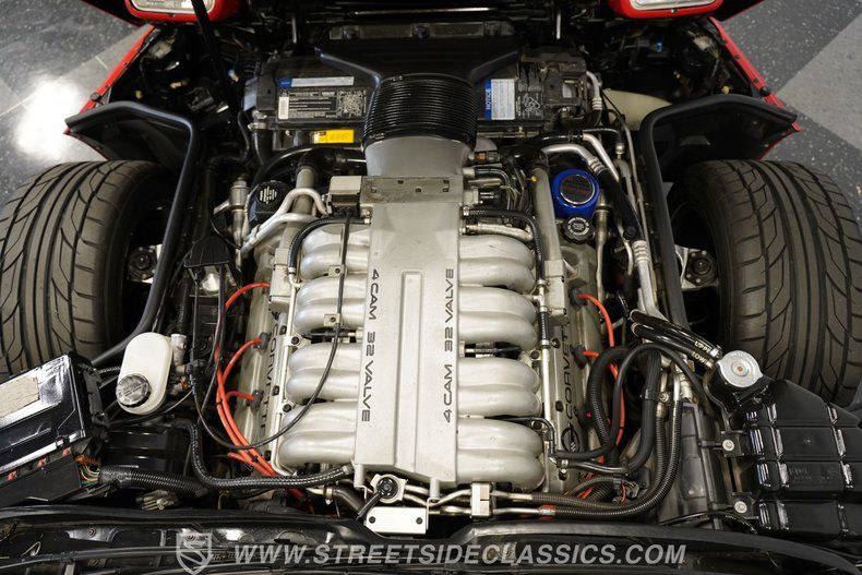 Under the hood sits the legendary LT5 5.7-liter 32-valve DOHC V8, paired with an upgraded radiator and alternator. Power is sent through a ZF 6-speed manual transmission to a stock Corvette rear end. The four-wheel independent suspension is enhanced with Bilstein Select Ride shocks at all four corners. Stock-style chrome factory wheels wear Nitto 555 tires-275/40R17 up front and 315/35R15 in the rear. Power disc brakes are fitted all-around with new pads and calipers, while the stock exhaust keeps the sound authentic to the car's roots.